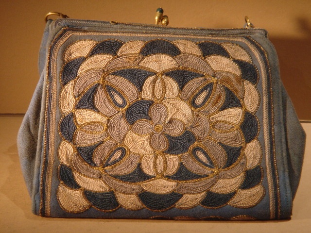 BLUE EMBROIDERED SUEDE HANDBAG 17 CM WIDE