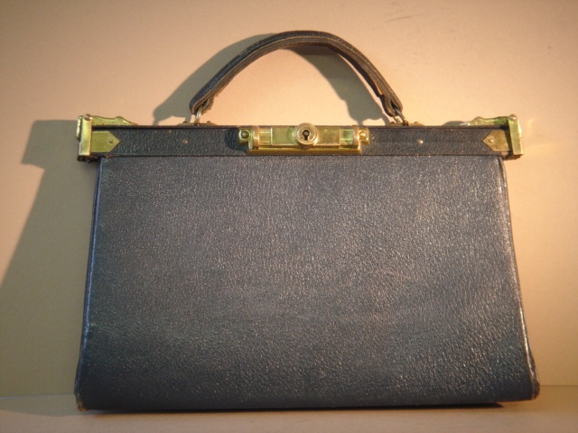 BLUE LEATHER GLADSTONE TYPE HANDBAG 27 CM WIDE