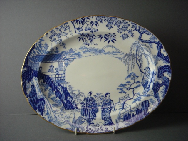 BLUE MIKADO SMALL OVAL PLATTER CROWN DERBY BY ROYAL DOULTON JAPANESE DESIGN 34 CM