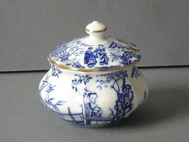 BLUE MIKADO SUGAR BOX AND LID CROWN DERBY BY ROYAL DOULTON JAPANESE DESIGN