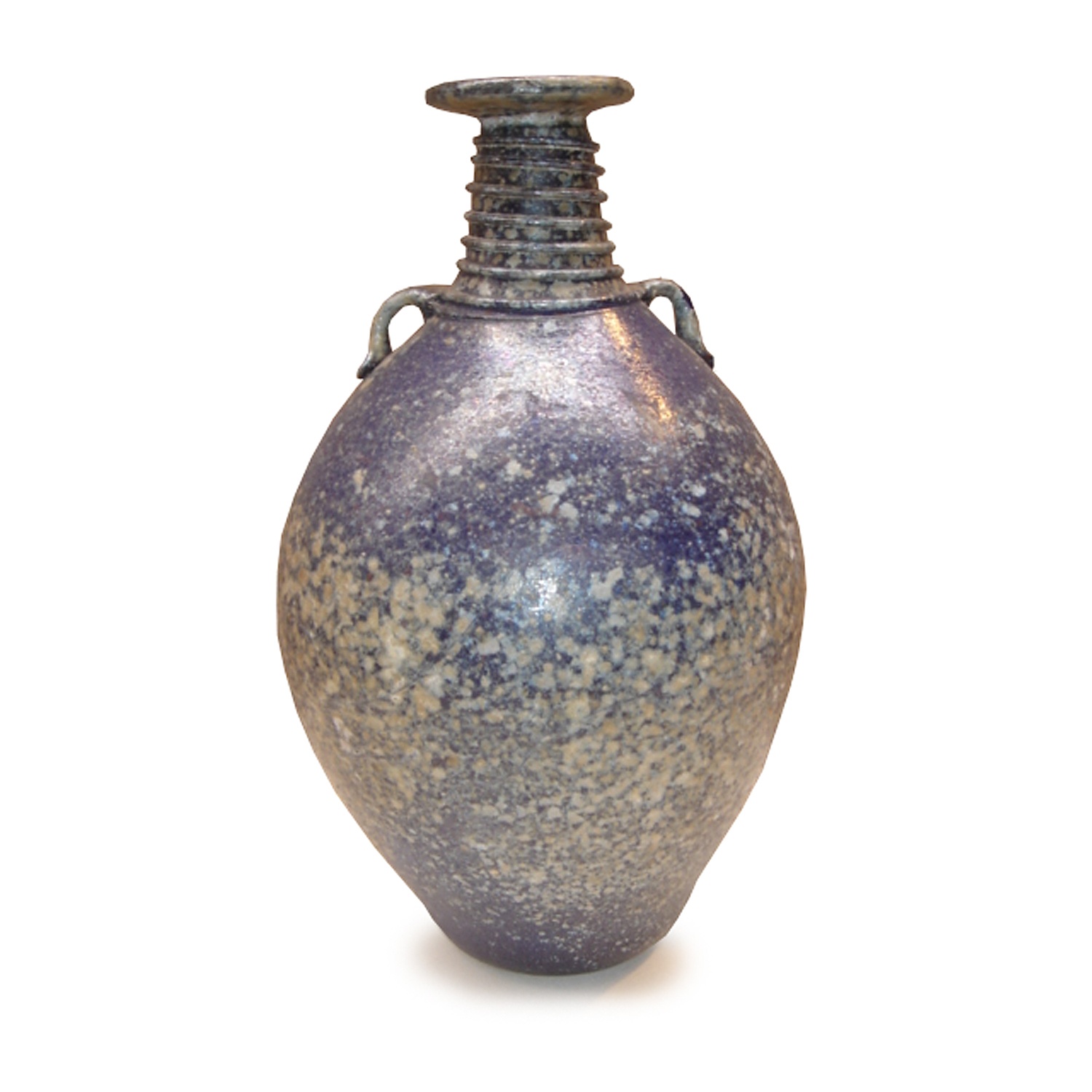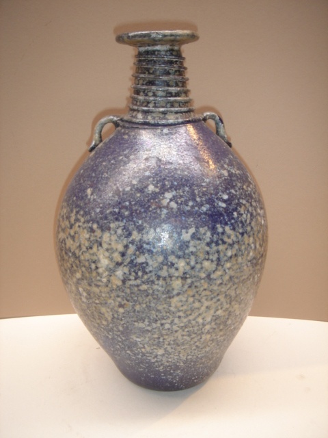 BLUE ROMAN GLASS VASE / EWER WITH RIBBED NECK 13/i HIGH