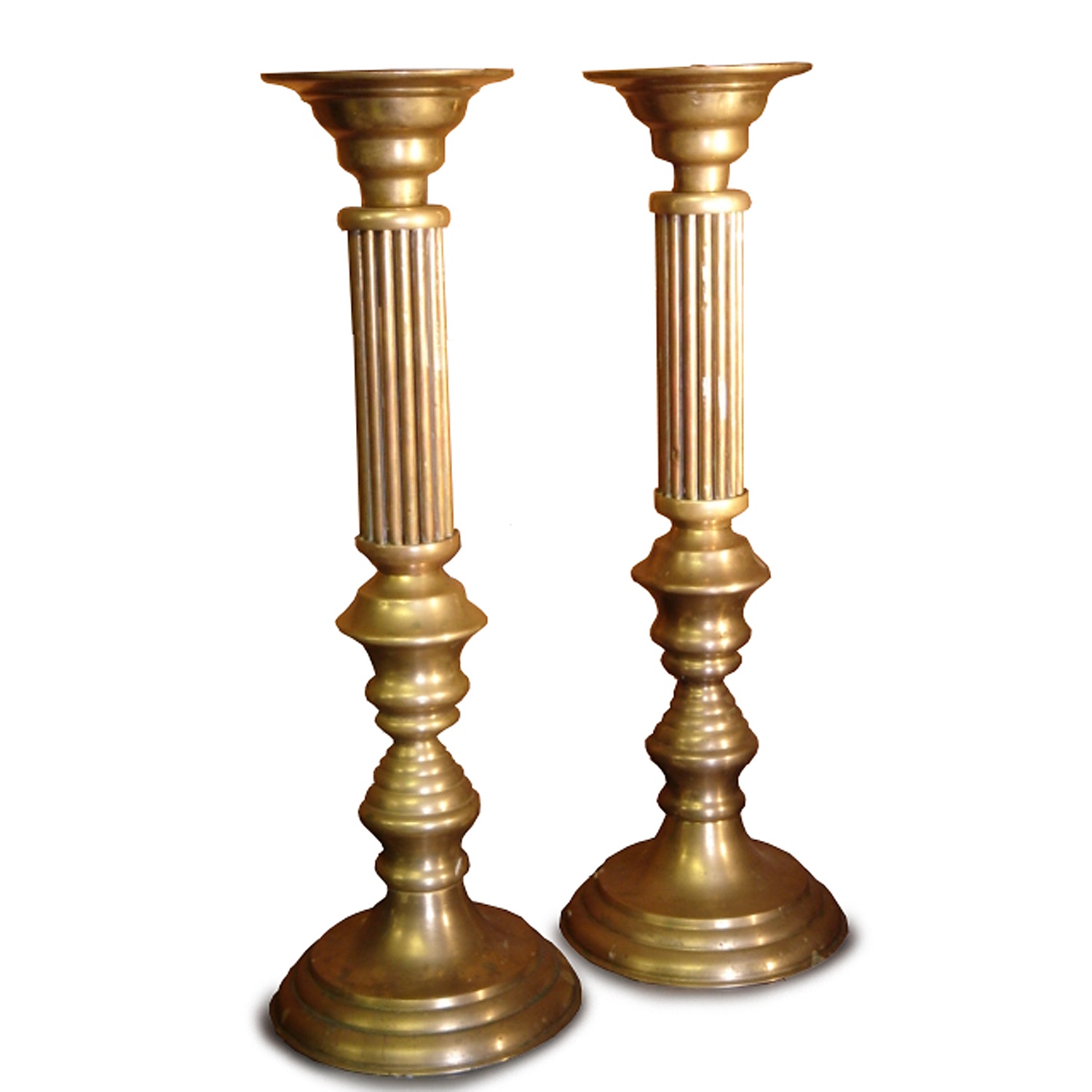 BRASS CANDLE PRICKET OPEN FLUTED STEM MEDIUM 18/i HIGH (X2)