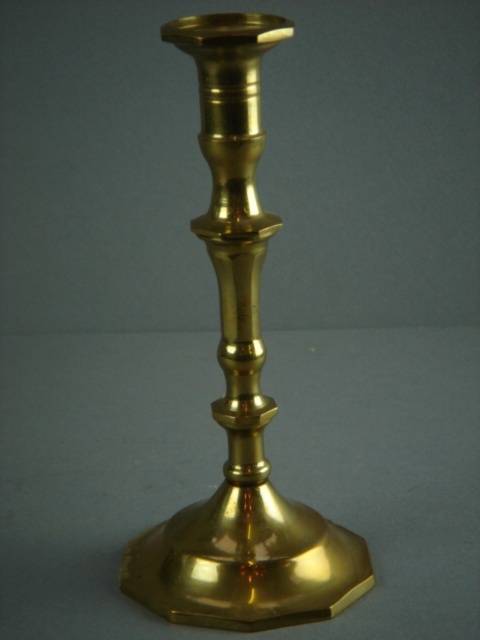 BRASS CANDLESTICK HEXAGONAL BASE 8/i HIGH 20 CM