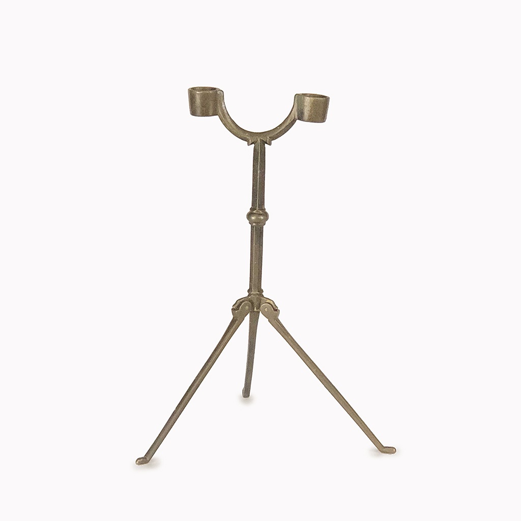 BRASS CANDLESTICK WITH TWO HOLDERS AND FOLDING TRIPOD BASE 30 CM HIGH (X4)
