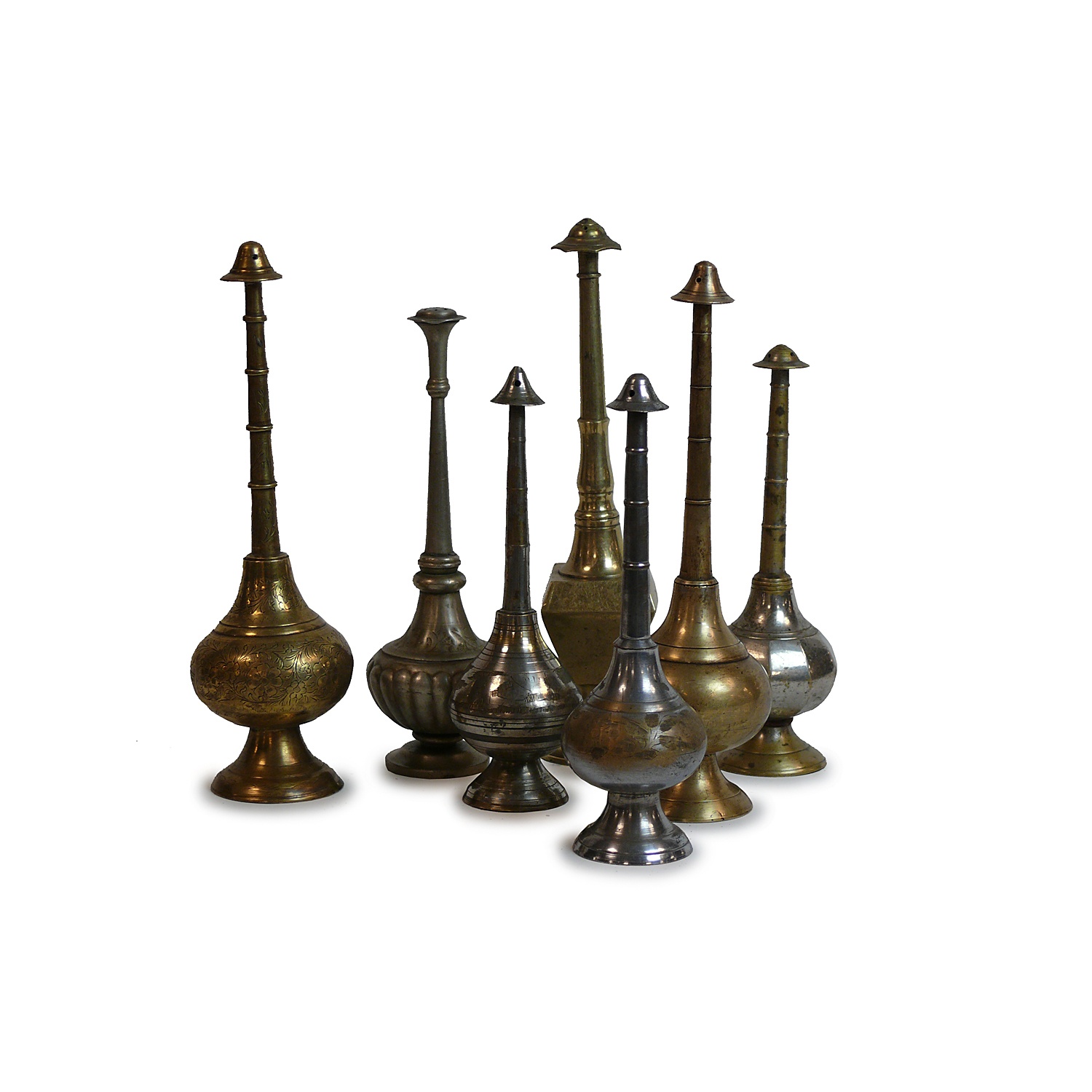 BRASS / SILVER ROSE WATER SPRINKLER BOTTLE 20 CM - 26 CM HIGH (X10)