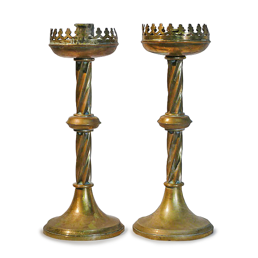 BRASS SPIRAL GOTHIC REVIVAL CANDLESTICK CIRCULAR BASE 36 CM HIGH 15 CM WIDE (X4)