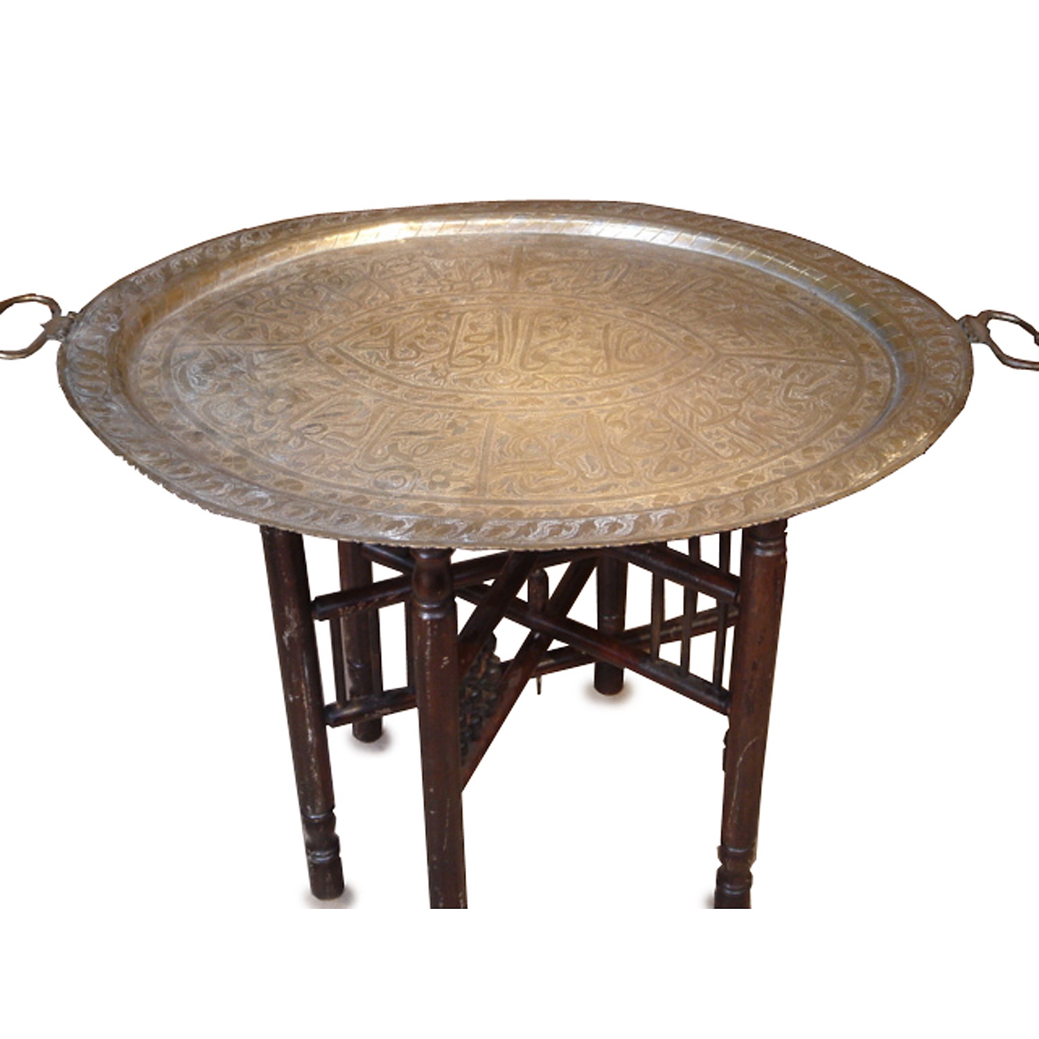 BRASS TOP INDIAN / MOROCCAN LOW TRAY TABLE INC.BASE 81 CM HIGH 45 CM DIAM (AVERAGE) (X13)