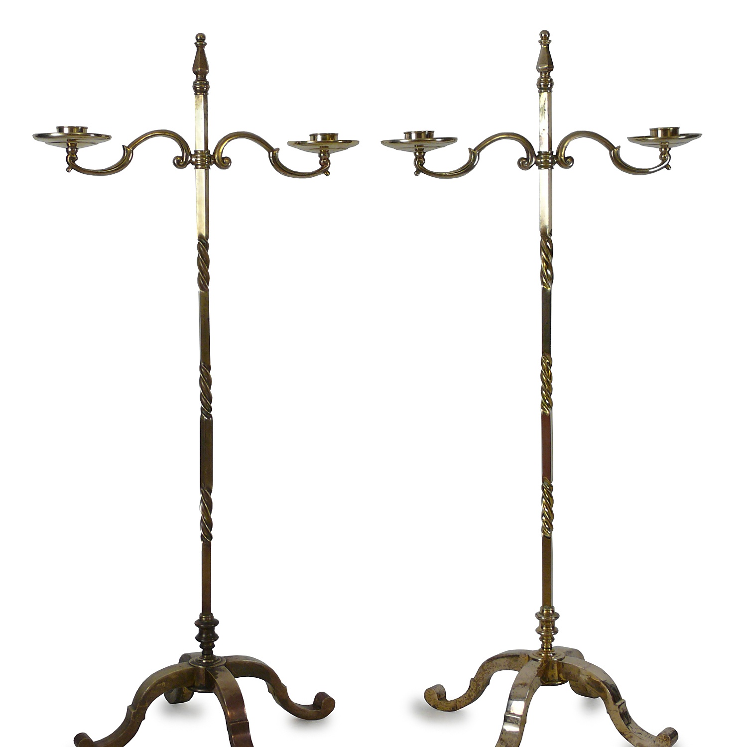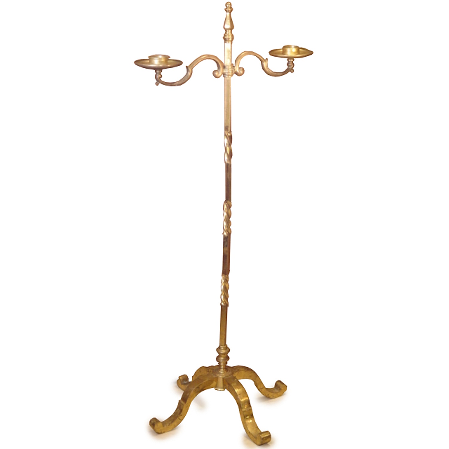 BRASS TWO BRANCH FLOOR STANDING CANDELABRA 4'8/i HIGH 142 CM