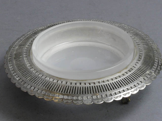 BRITANIA METAL BUTTER DISH WITH FROSTED GLASS LINER 19 CM DIAM.