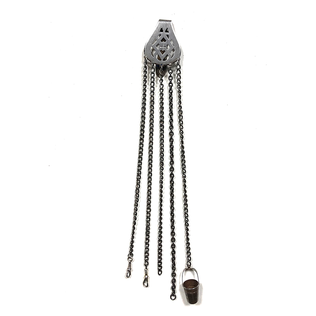 BRITANIA METAL CHATELAINE BELT CLIP WITH OPEN WORK TOP 33 CM LONG