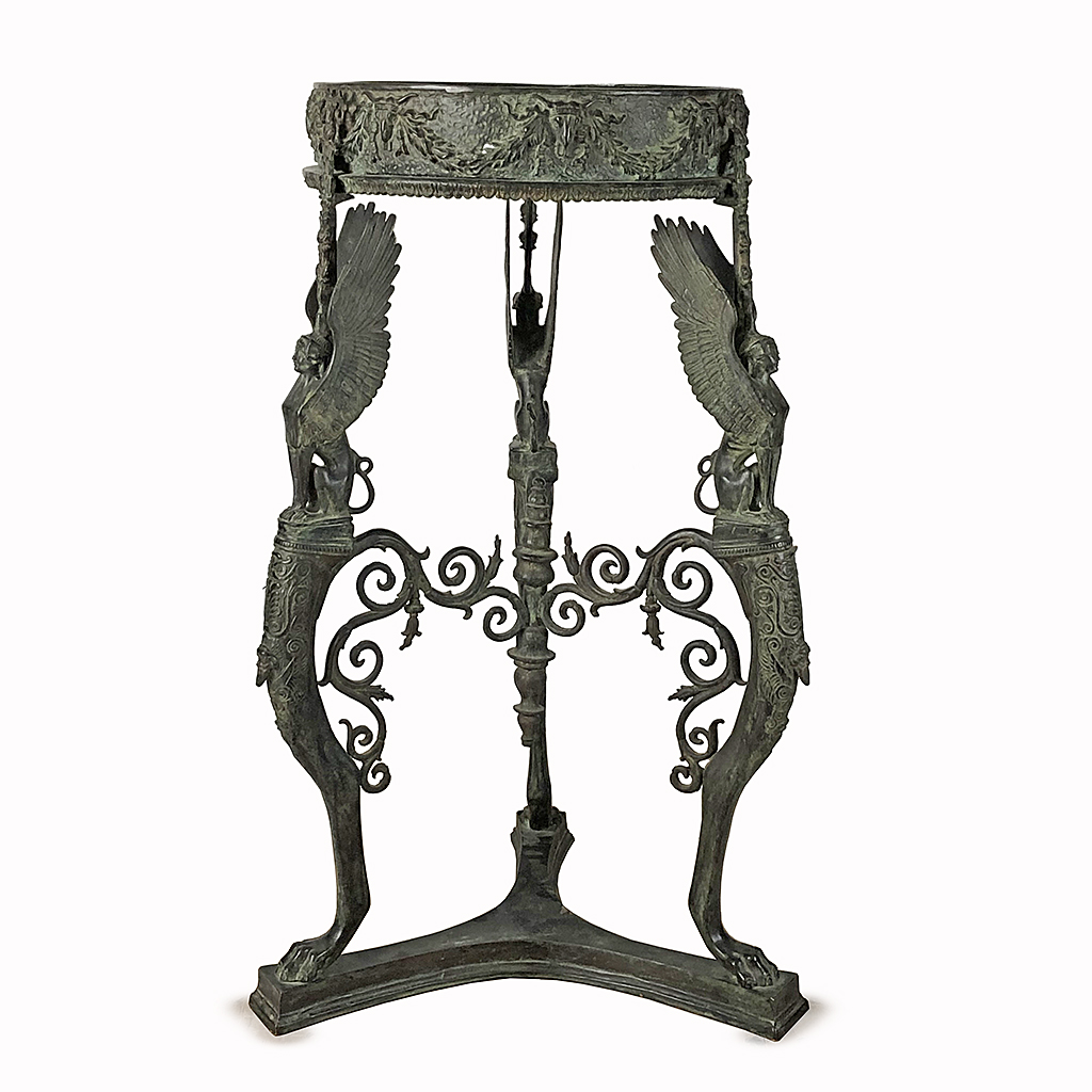 BRONZE BRAZIER / JARDINIERE ON THREE SATYR LEGS AND TRI CORN BASE SIMULATED BRONZE TOP CHIURAZZI FOUNDRY NAPLES 89 CM HIGH 40 CM DIAM (SEE ALSO JARC10041)
