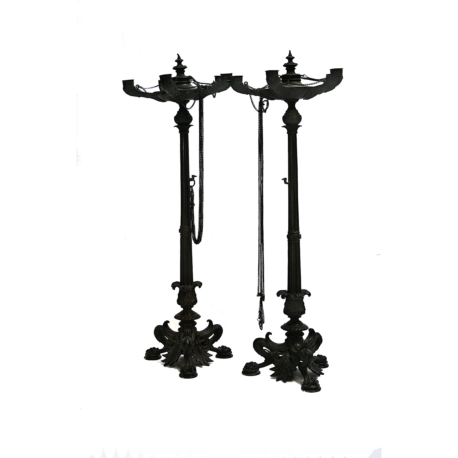 BRONZE CLASSICAL CANDELABRA WITH CHAINS FIVE BRANCH 85 CM HIGH 30 CM WIDE (X2)