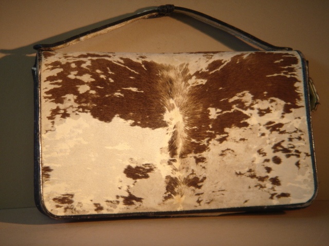 BROWN AND WHITE COW SKIN HANDBAG 28 CM WIDE