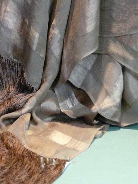 BROWN CHIFFON STOLE WITH STRIPED BORDER AND FRINGING