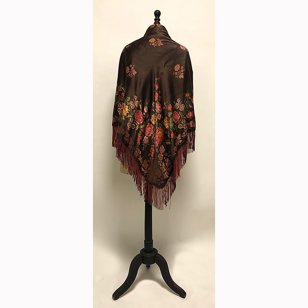 BROWN / RED SILK TRIANGULAR SHAWL WITH QUILTED LINING