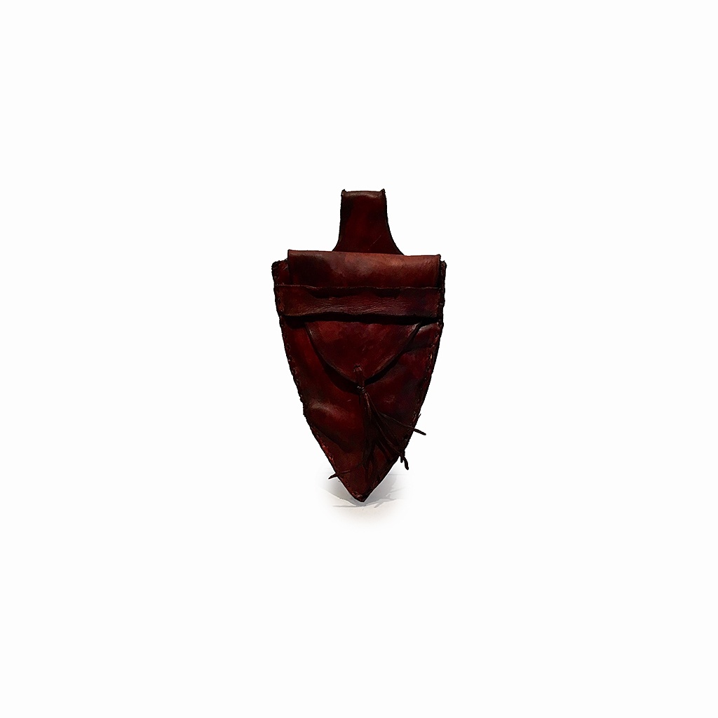 BROWN WORN LEATHER TRIANGULAR SHAPED MEDEIVAL STYLE POUCH BAG WITH FLAP FRONT