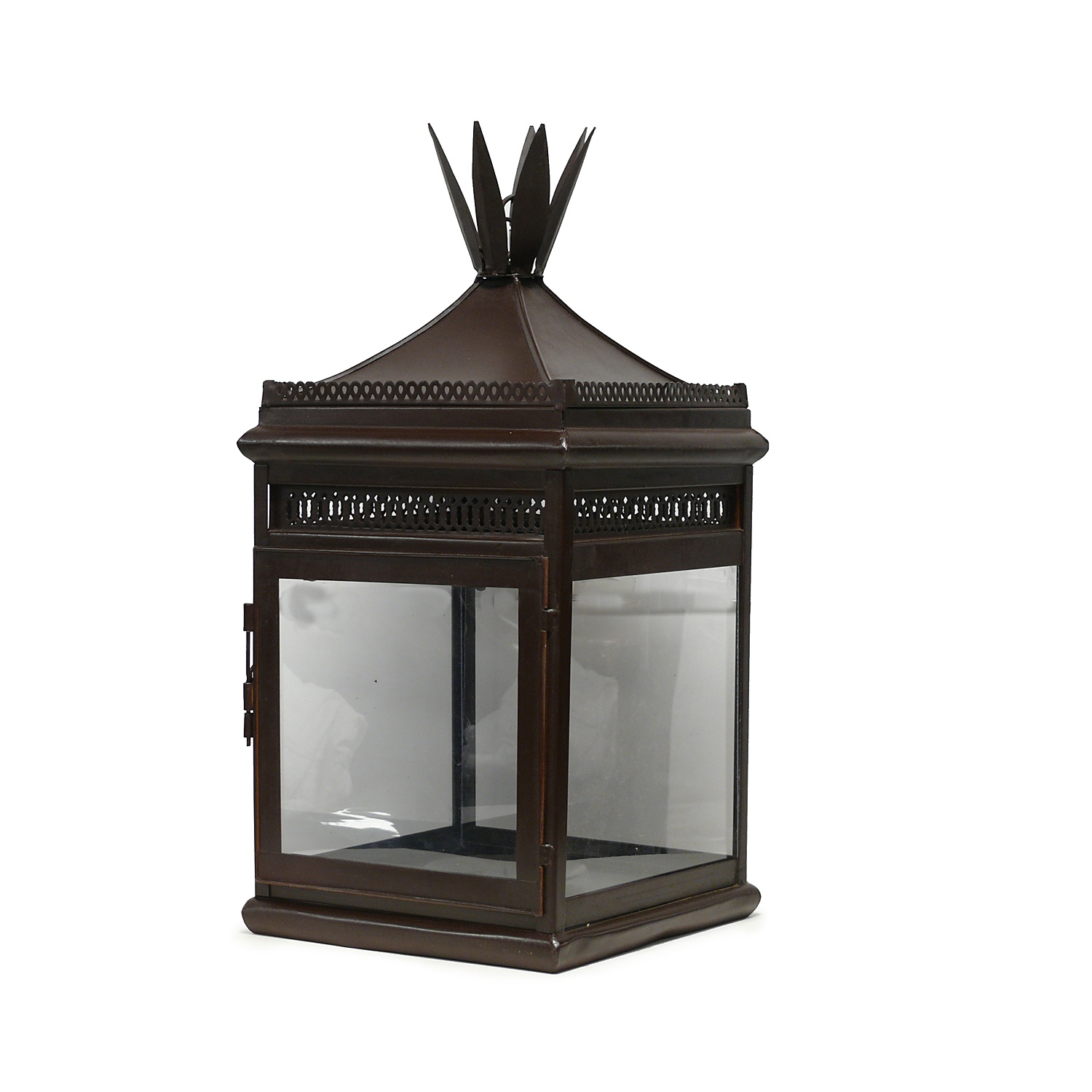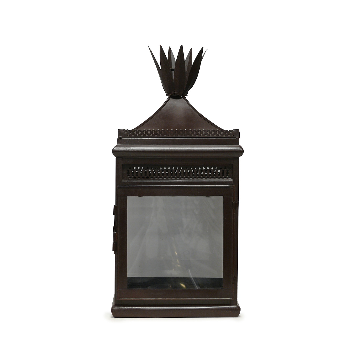 BROWN WROUGHT IRON LANTERN WITH PINEAPPLE TOP 62 CM HIGH 29 CM WIDE 29 CM DEEP (X10)