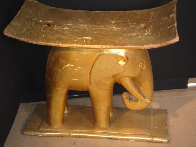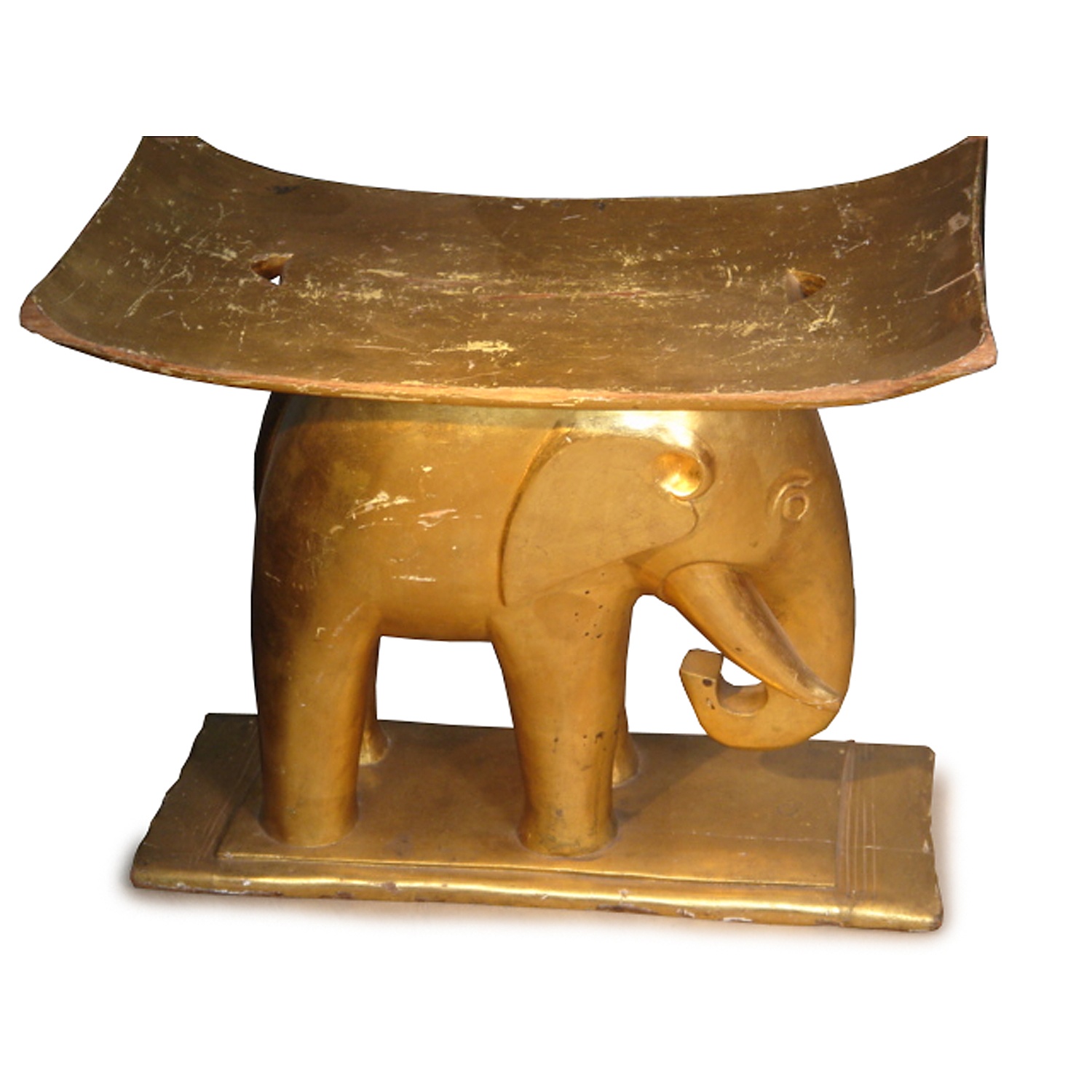CARVED AND GILDED ELEPHANT STOOL ASHANTI