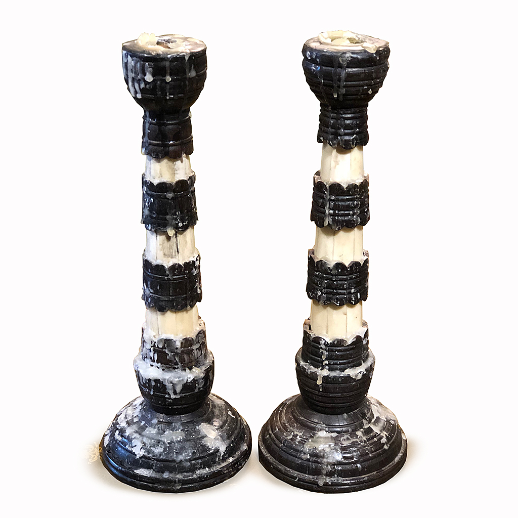 CARVED EBONY AND WHITE BONE CANDLESTICK 28 CM HIGH (X4)