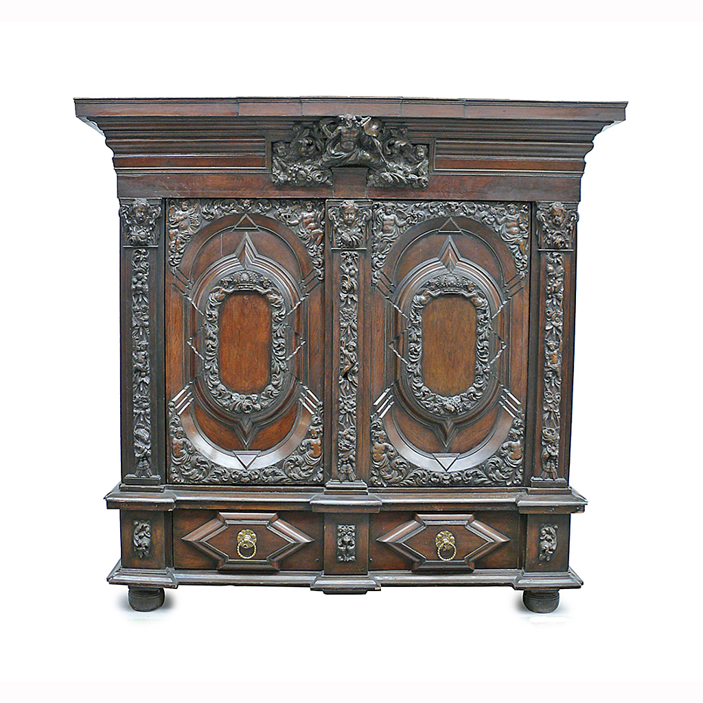 CARVED GERMAN HAMBURGER SCHAPPS WARDROBE / CUPBOARD ORNATE CARVED DARK WALNUT 18TH CENT 223 CM HIGH 234 CM WIDE 86 CM DEEP