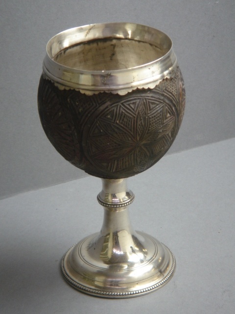 CARVED WOODEN SILVER RIM GOBLET / CUP CHALICE TYPE