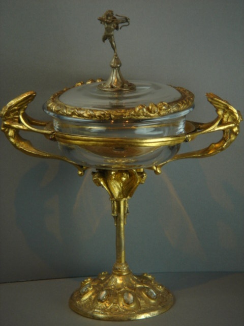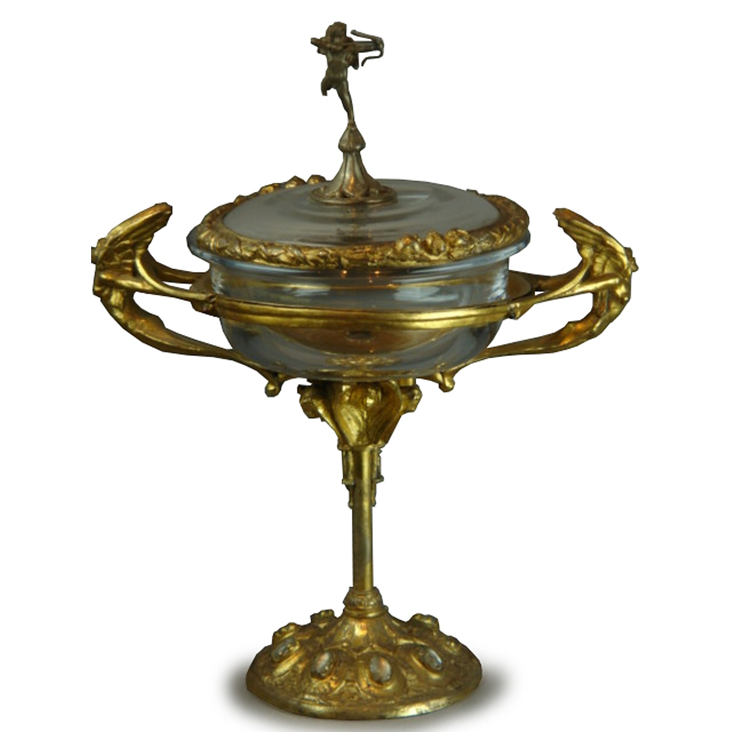CHALICE CUP AND COVER VENETIAN GILT BRONZE AND LOOSE GLASS LINER WITH ROCK CRYSTAL JEWEL ENCRUSTED BASE 15/i HIGH