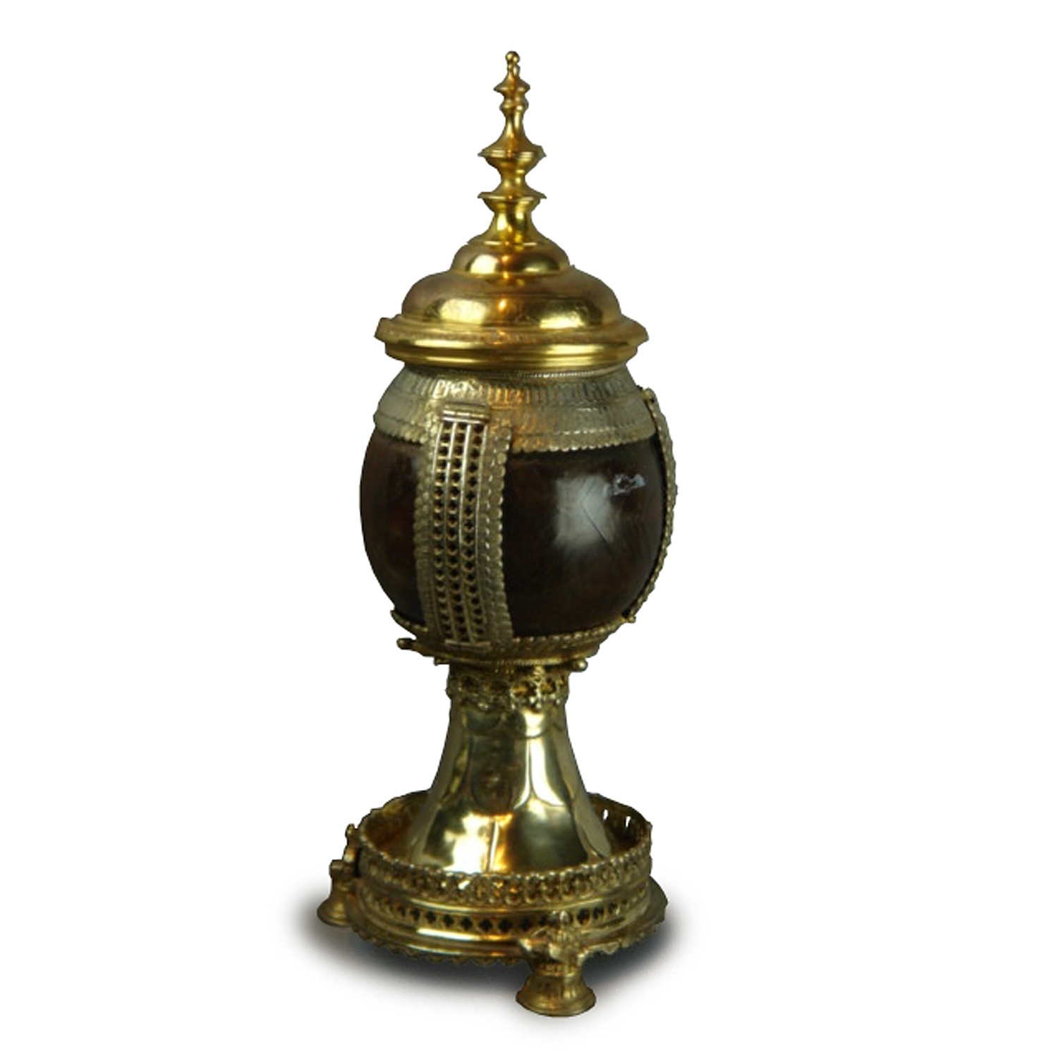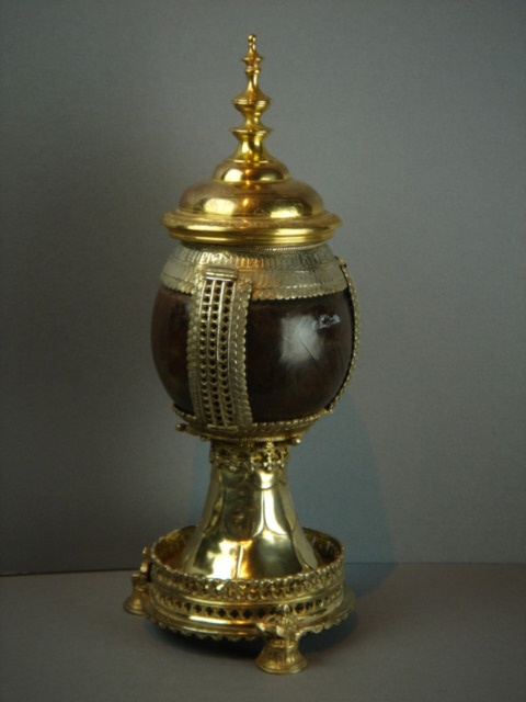 CHALICE SILVER MOUNTED COCONUT WITH COVER SILVER GILT LID ELKINGTON CIRCA 1500 13/i HIGH 32 CM