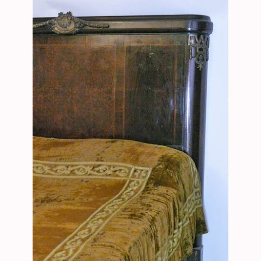 CHARLES X INLAID BURR WALNUT DOUBLE BED WITH ORMOLU MOUNTS PLUS MATTRESS 5' WIDE (HEADBOARD 148 CM HIGH / FOOTBOARD 81CM HIGH)