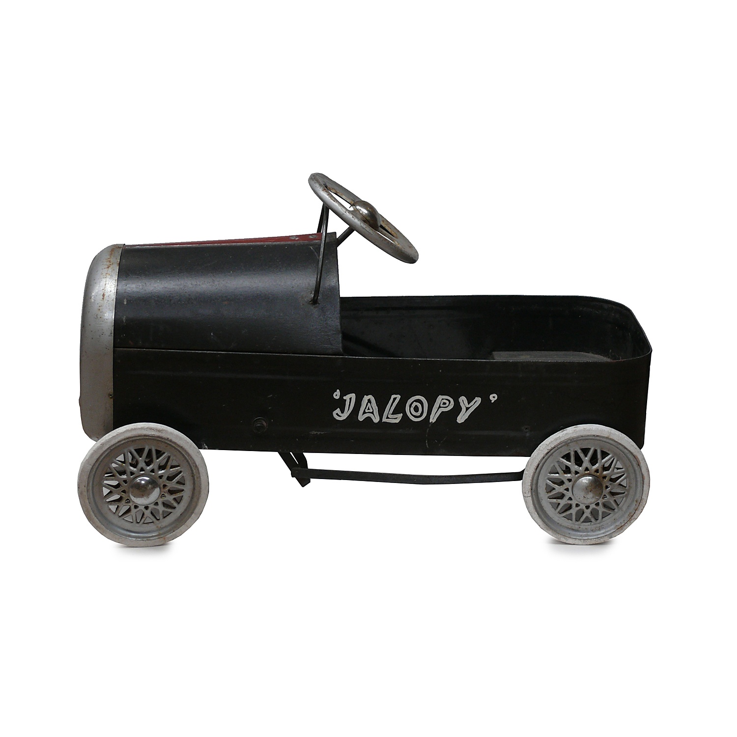 CHILDS TOY PEDDLE CAR BLACK PAINTED TIN JALOPY LEEWAY 76 CM LONG