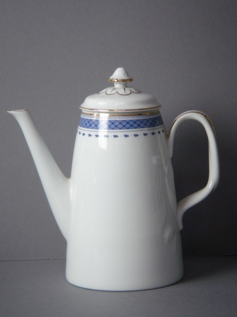 CHINA COFFEE POT AND LID YORK BY VISTA ALLEGRI WHITE WITH BLUE BAND (X3)