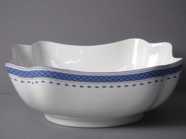 CHINA VEG. BOWL SQUARE YORK BY VISTA ALLEGRI WHITE WITH BLUE BAND (X3)