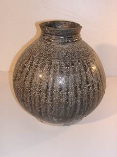 CHINESE BLACK GLAZED RIBBED VASE EARLY 19TH C. QUING PERIOD