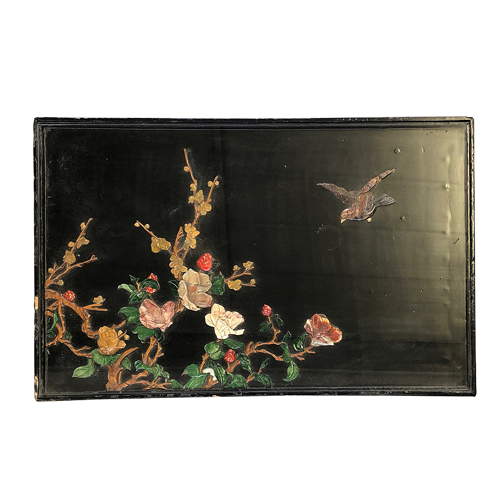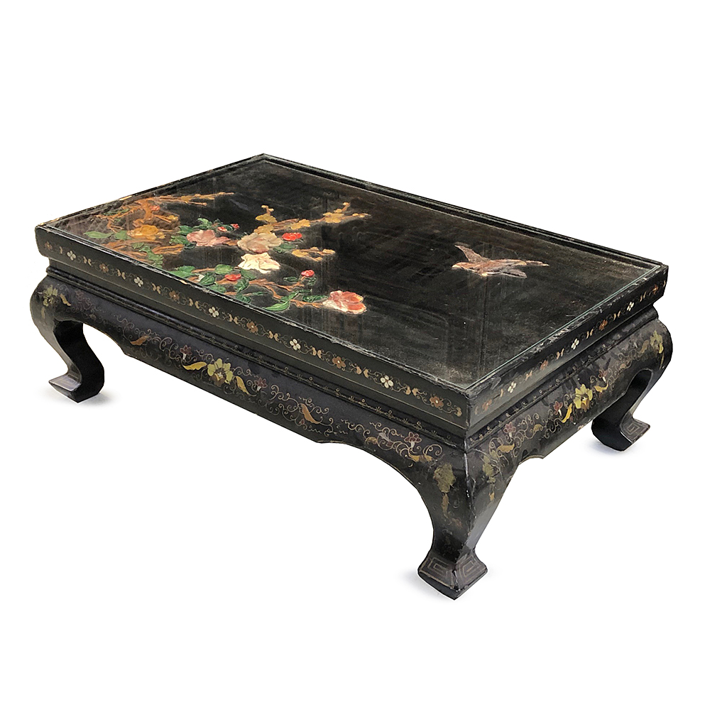 CHINESE BLACK LACQUER LOW COFFEE TABLE CARVED RELIEF TOP 31 CM HIGH 86 CM WIDE 55 CM DEEP