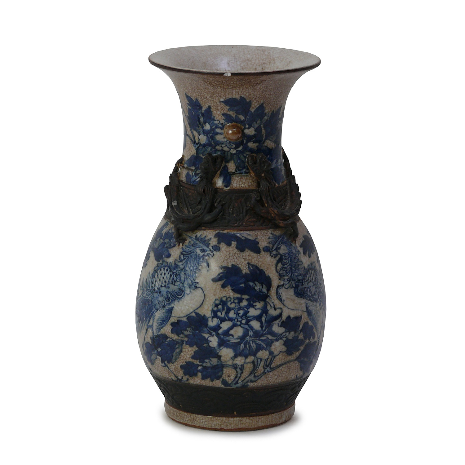 CHINESE BLUE AND GREY VASE CANTON BRONZE AND CRACKLE GLAZED CIRCA 1900