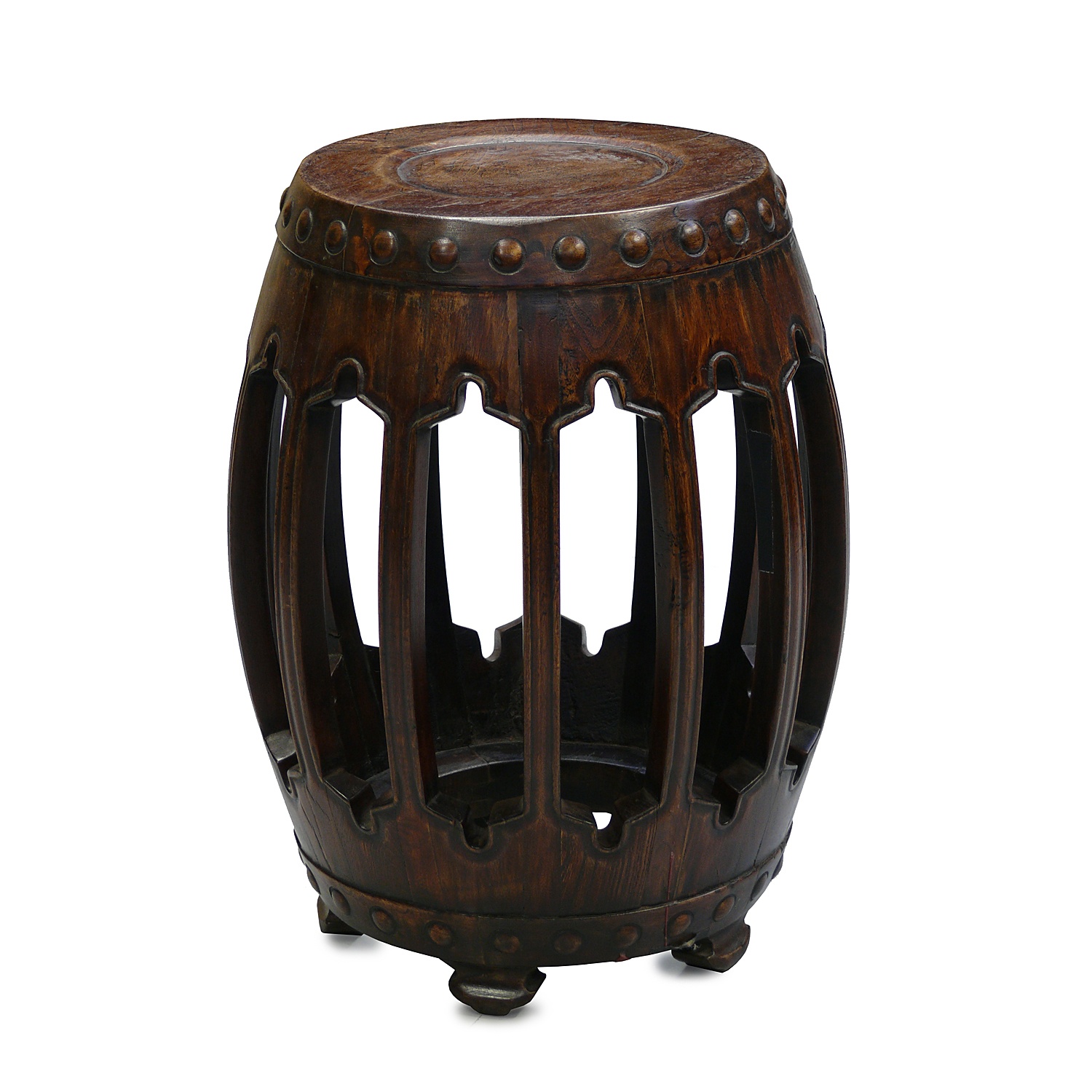 CHINESE CARVED STOOL BOWED DRUM SHAPE 20" HIGH (X4)
