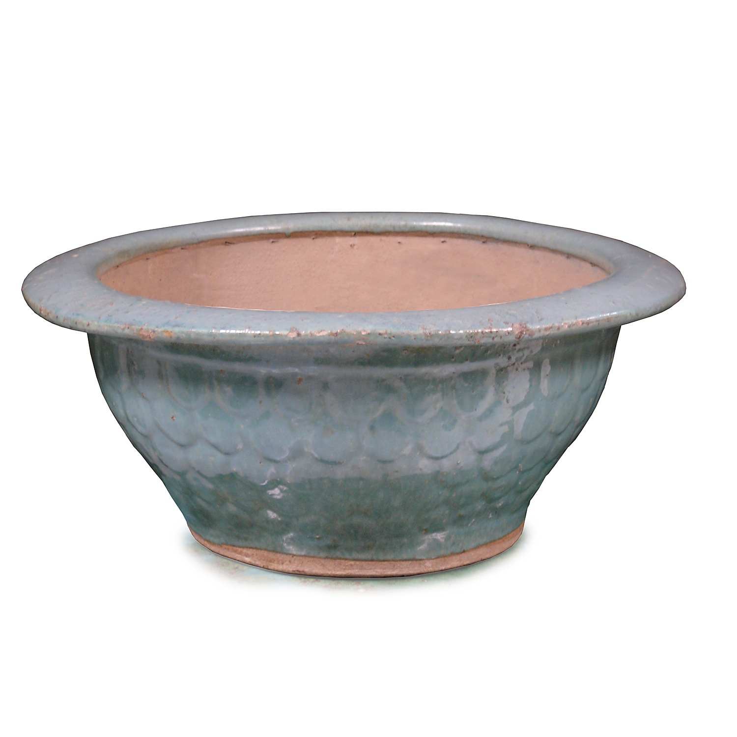 CHINESE CELADON GREEN BOWL / VASE LOTUS RELIEF PATTERN