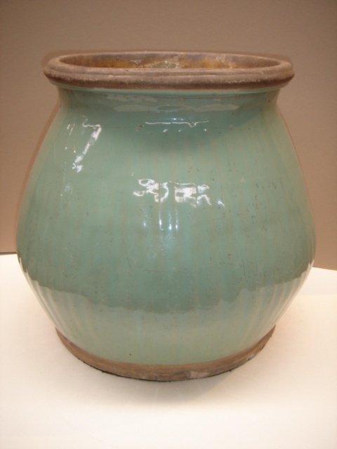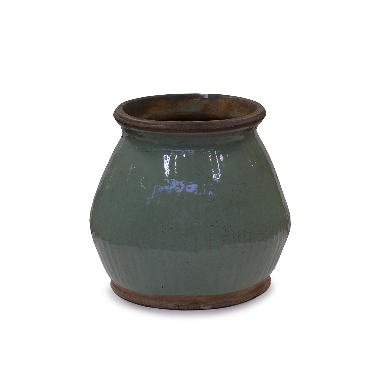 CHINESE CELADON GREEN MEDIUM SALTING JAR / VASE 12/i HIGH WITH RIBBED SIDES