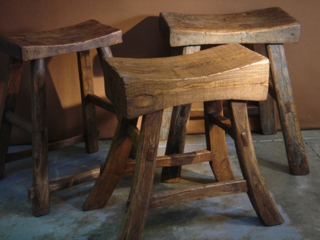 CHINESE CHOPPING BLOCK STOOL RUSTIC STYLE WITH DIP SEAT 45 CM - 58 CM HIGH (X7)