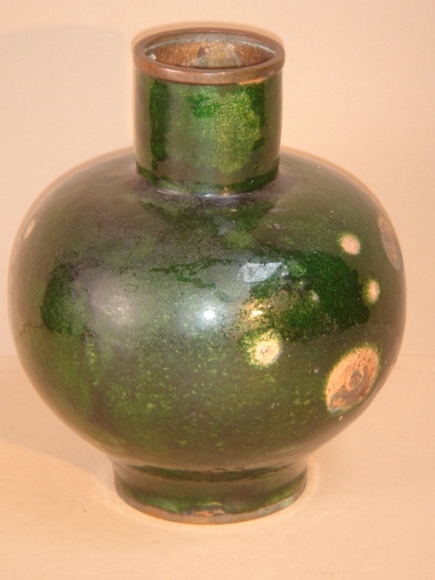 CHINESE DARK GREEN ENAMEL VASE NARROW NECK 8/i HIGH
