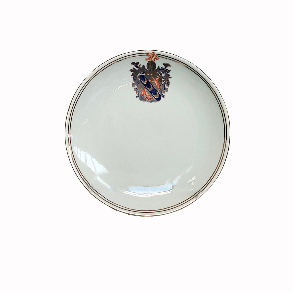 CHINESE EXPORT CREAM SMALL SIDE PLATE WITH NAVY HERALDIC CREST