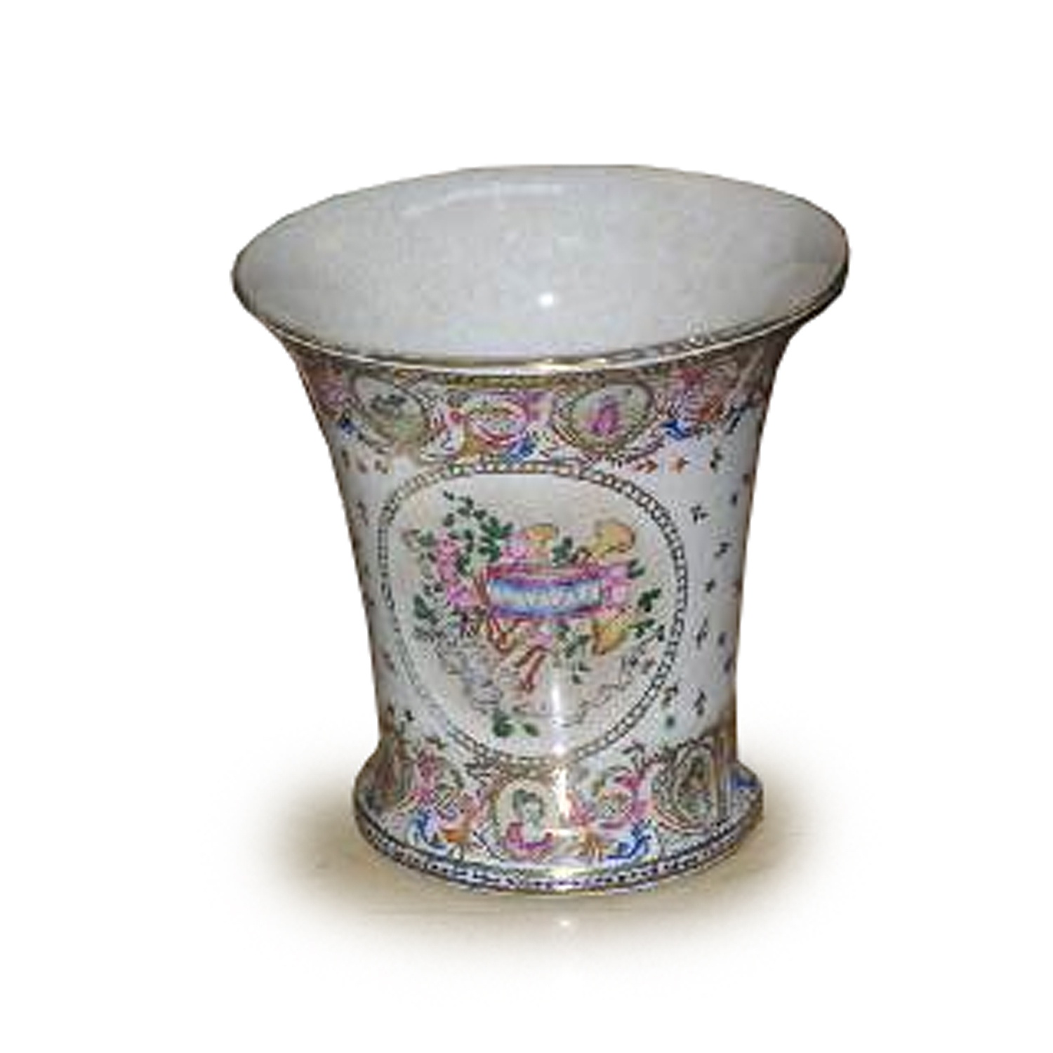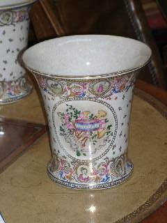 CHINESE EXPORT FLARED PALE SHAPE VASE 8/i HIGH MUSIC PANEL DESIGN (X2)