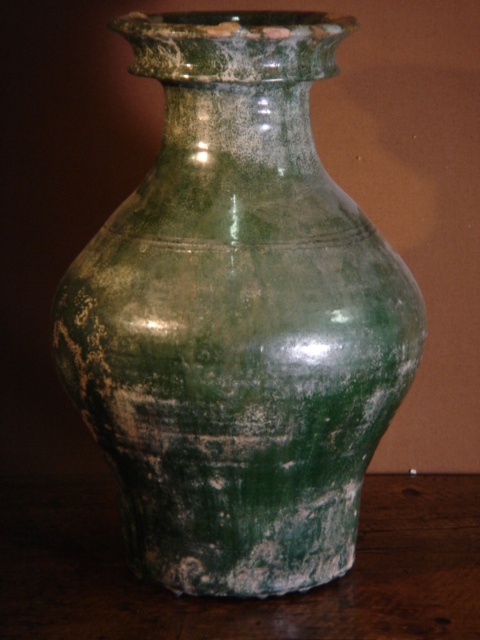CHINESE HAN DYNASTY VASE DARK GREEN GLAZED CERAMIC 15/i 39 CM 206 BC - 220 AD