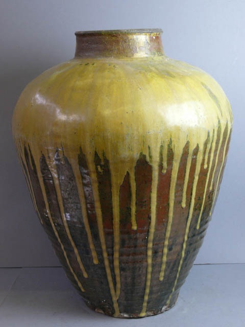 CHINESE HU VASE LARGE BROWN WITH YELLOW SLIP GLAZE 62 CM - 82 CM (X9)