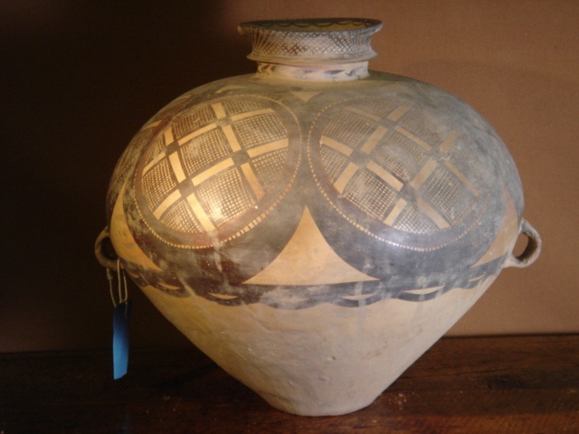 CHINESE LARGE NEOLITHIC PERIOD VASE BLACK DECORATED EARTHENWARE 15/i HIGH 37 CM 6500 - 1700 BC BANSHAN CULTURE GANSU