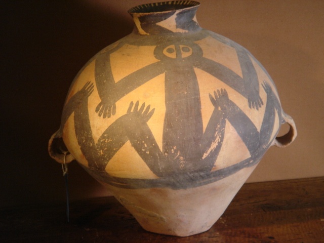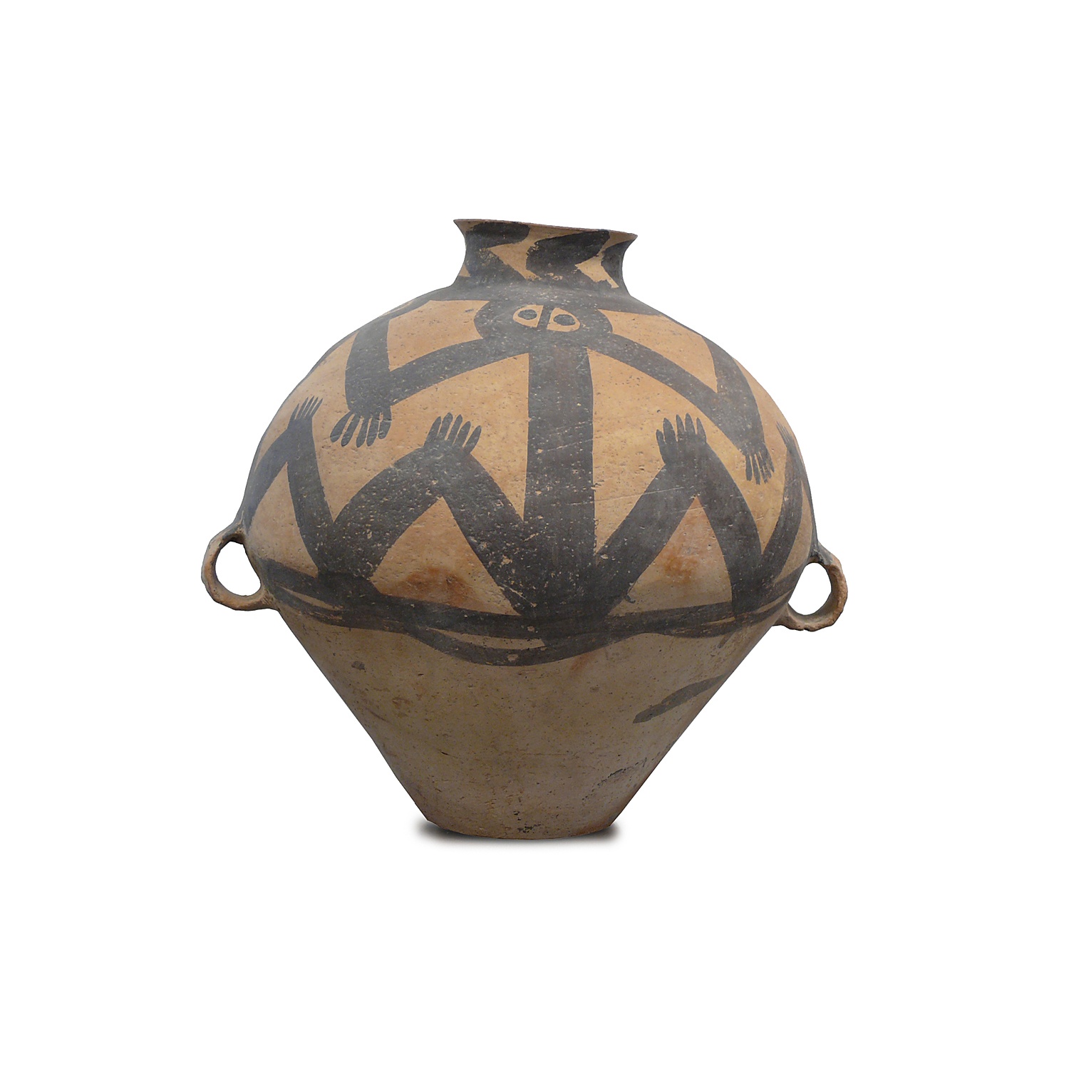CHINESE LARGE NEOLITHIC PERIOD VASE BLACK DECORATED EARTHENWARE 15/i HIGH 37 CM HIGH 6500 -1700 BC BANSHAN CULTURE GANSU