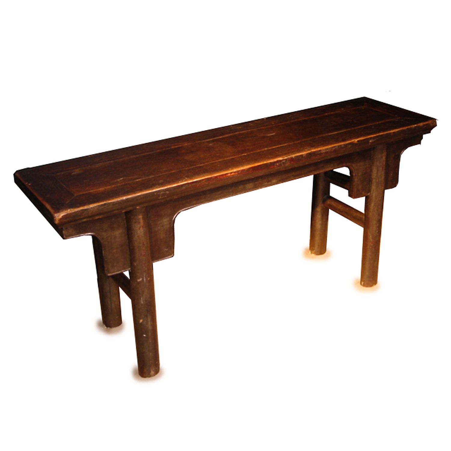 CHINESE NARROW BENCH / LOW TABLE 19TH CENT JUMU WOOD 49 CM HIGH 110 CM LONG 28 CM DEEP (X2)