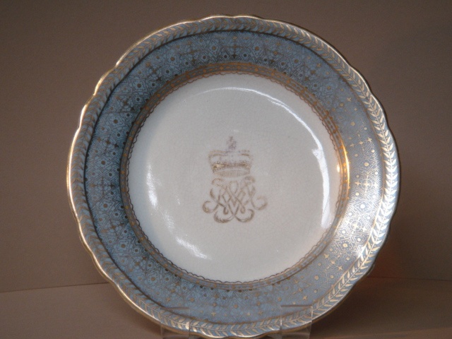 CHINESE PALE BLUE AND CREAM DINNER PLATE WITH CROWN CREST