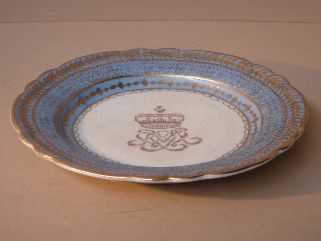 CHINESE PALE BLUE AND CREAM SMALL SIDE PLATE WITH CROWN CREST