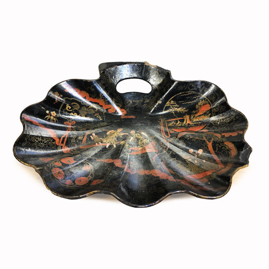 CHINESE RED AND BLACK LACQUER SHAPED BOWL / CRUMB TRAY 30 CM WIDE