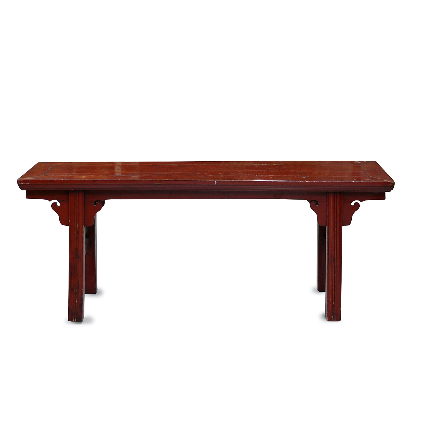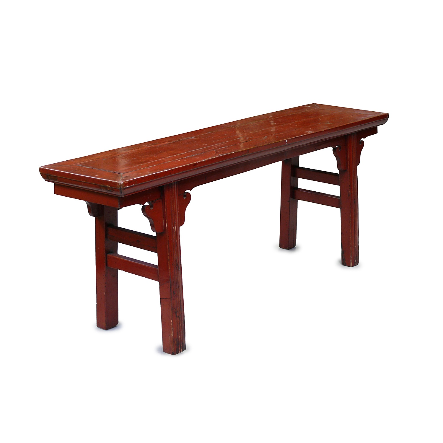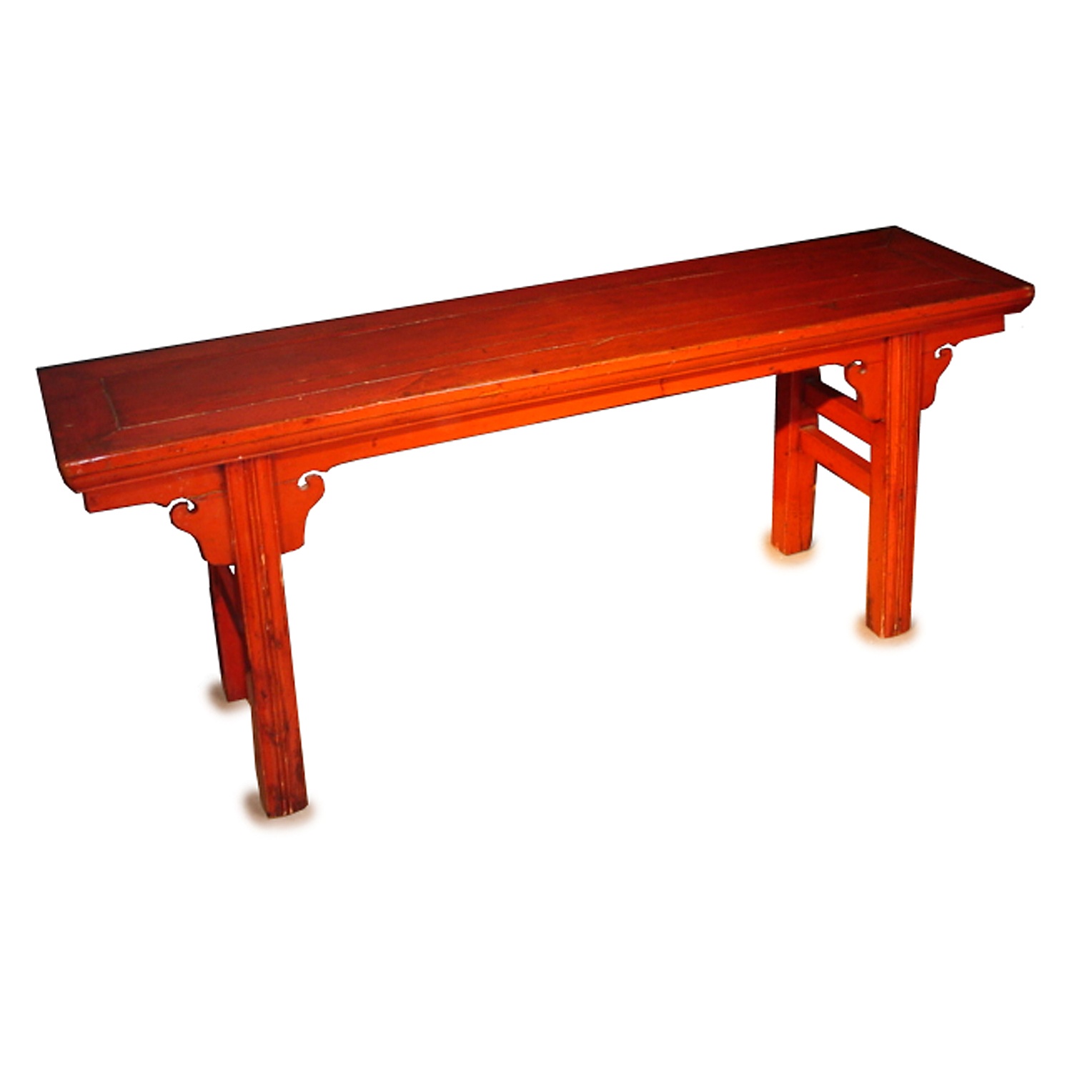 CHINESE RED LACQUER NARROW BENCH / LOW TABLE 48 CM HIGH 122 CM LONG 30 CM WIDE (X2)